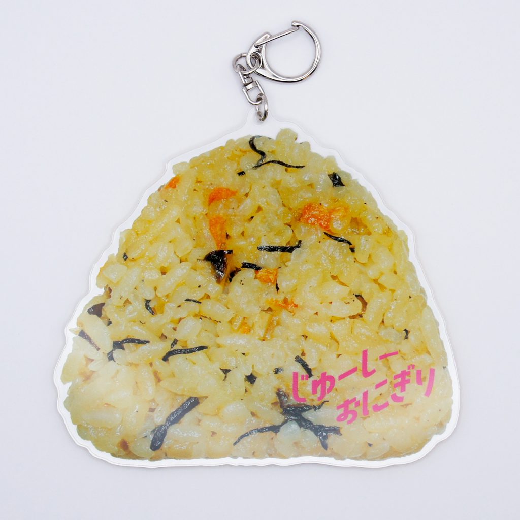 沖縄の家庭の味「じゅーしーおにぎり」を、そのままキーホルダーに!炊き込みご飯のほっこりとした雰囲気をリアルに再現し、見るだけで温かい気持ちになれるデザインです。思わず「それおにぎり!?」と驚かれるほどの完成度は、話題性バツグン。